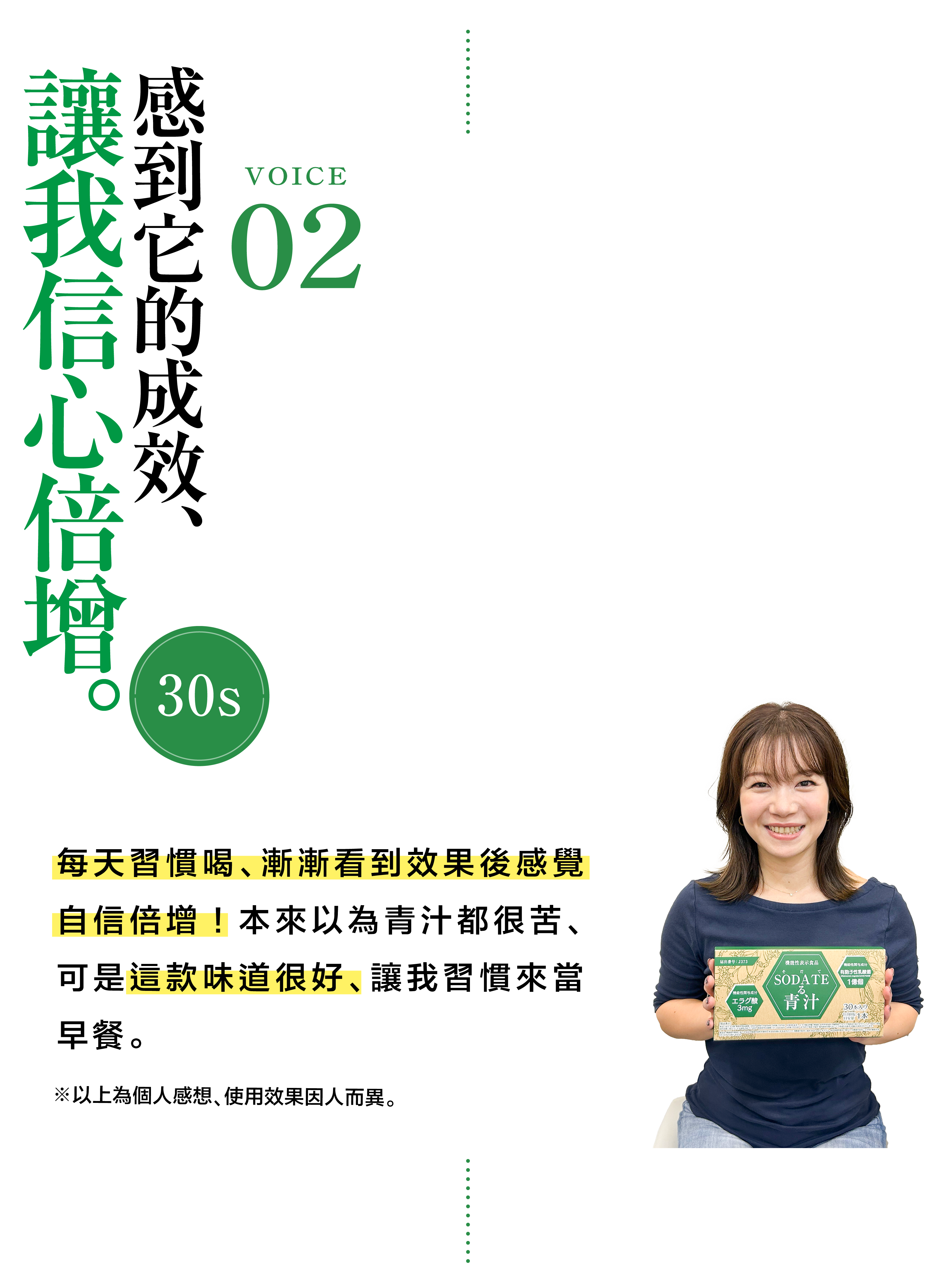 雖然有羽衣甘藍成分,但抑制了青汁特有的青草味,喝完之後也不會有苦澀的後勁,非常清爽回甘。如果搭配牛奶等一起飲用,口感更溫和,小朋友也喜歡的口味。